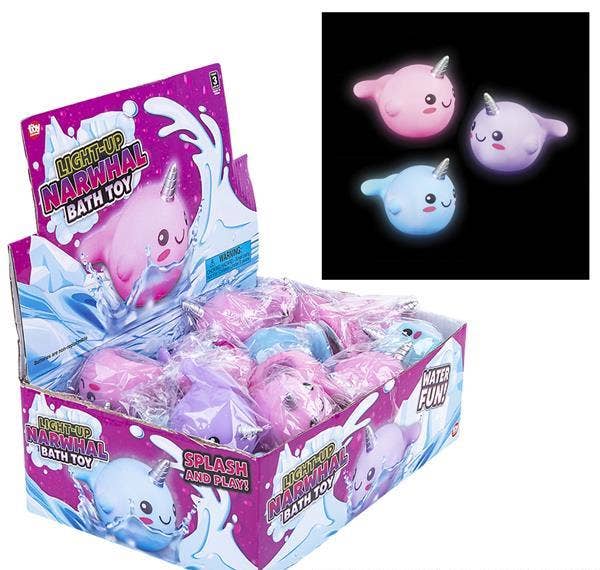 • 3" Light-Up Narwhal Bath Toy • Perfect for fun in the tub • Great for gift shops and presents Ages 3+ Make bath time an enchanting adventure with our 3" Light-Up Narwhal Bath Toy. Perfect for kids aged 3 and up, this whimsical toy will make a splash in any tub. And with its vibrant lights, it's sure to make a great gift for any occasion. So why not add a little magic to your next bath time?