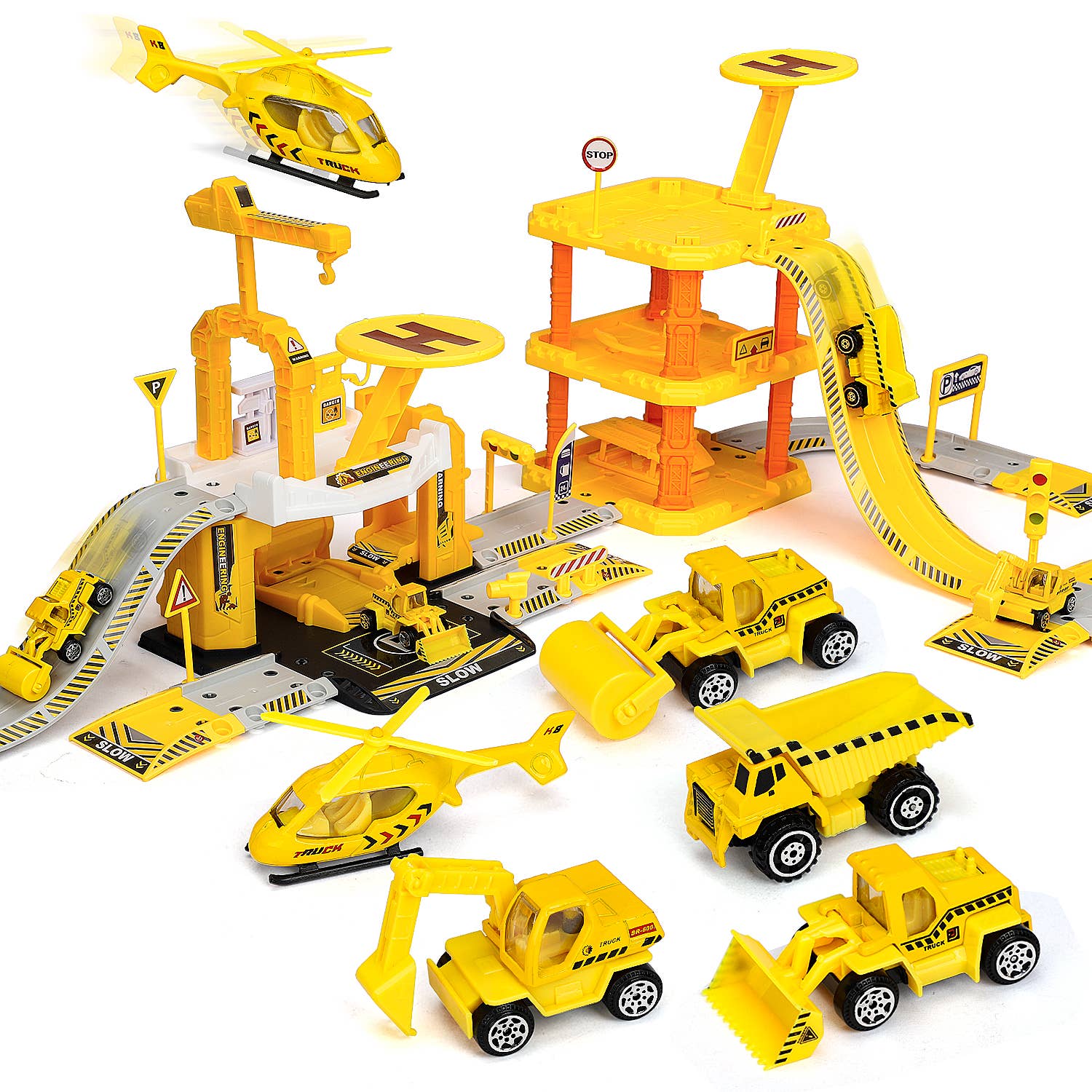 ● BUILD YOUR OWN ADVENTURE: This construction toys set lets you create a whole world in one! It’s got a construction site, a parking garage, a helicopter pad, and a racetrack - with stickers to add more fun to the buildings. ● INCLUDES 5 AWESOME VEHICLES: What’s a construction track without trucks? This set has four, plus a bonus helicopter, with moving parts and top-notch design. Kids will be entertained for hours! ● KID-FRIENDLY & STURDY: Made to withstand rough playtime, each piece in this construction set is durable and safe. From the high-quality ABS plastic track to the die-cast cars, it’s built to last. ● SIMPLE TO BUILD: Despite having 50 building pieces, this set is easy for kids to put together. They can use our simple instruction manual to create something they’ll be proud of!