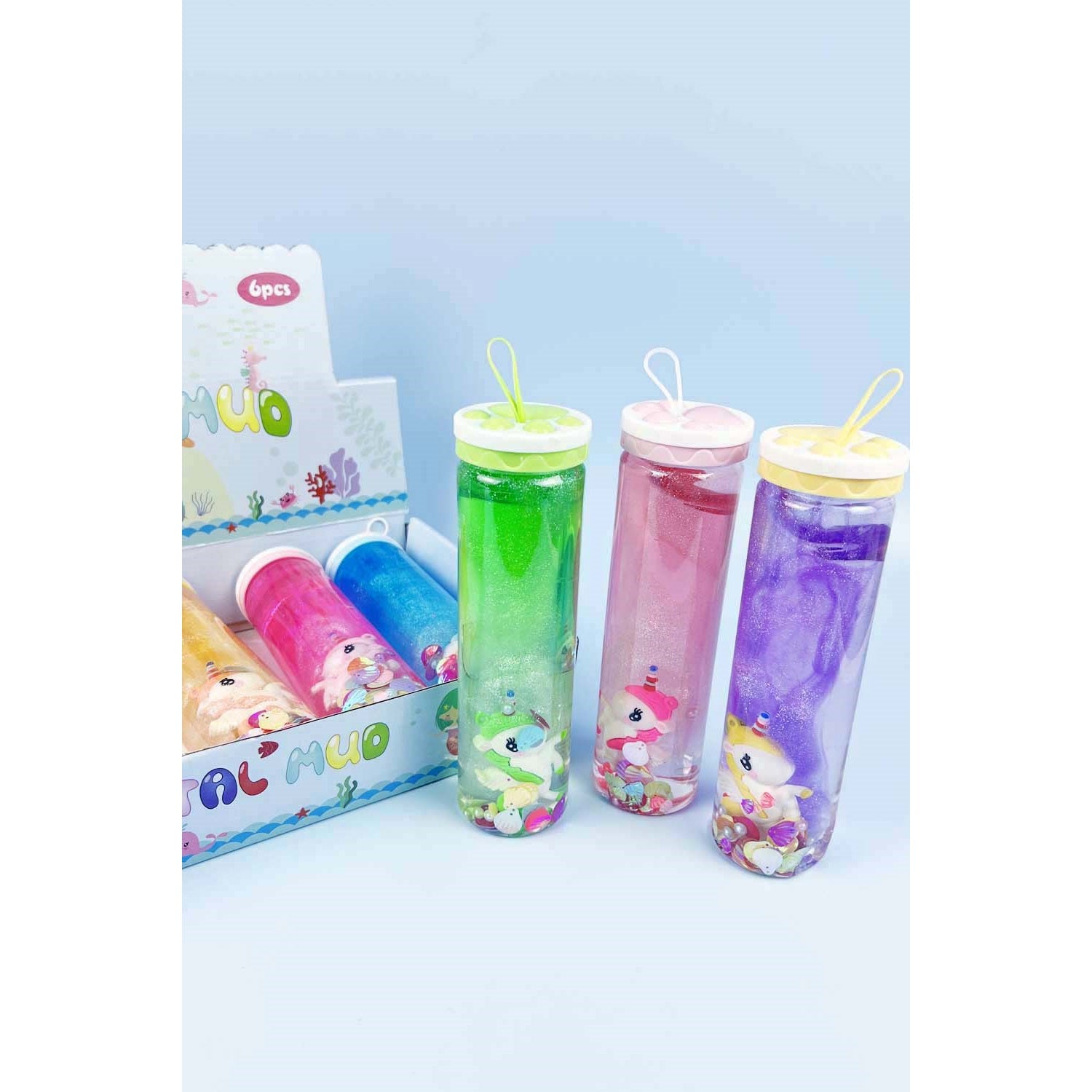 FLUFFY GALAXY SLIME WITH UNICORN FIGURE PACK OF 6