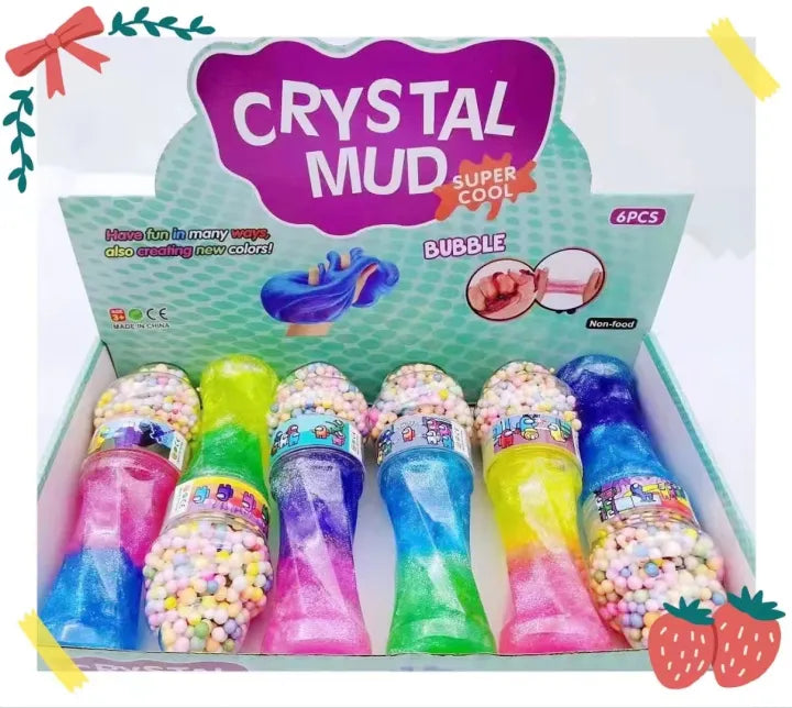 Slime! Each magic wand comes with crystal mud slime in a magical color with it's own bead filled cap to mix with the slime magic. Easy to mix and make different creations with! Children get to shape and model this toy, however you want! This toy is fun, with a satisfying stretch for endless play. This mud slime is fun to play with as an imagination sparker, an entertaining fidget, and a satisfying stress reliever.
