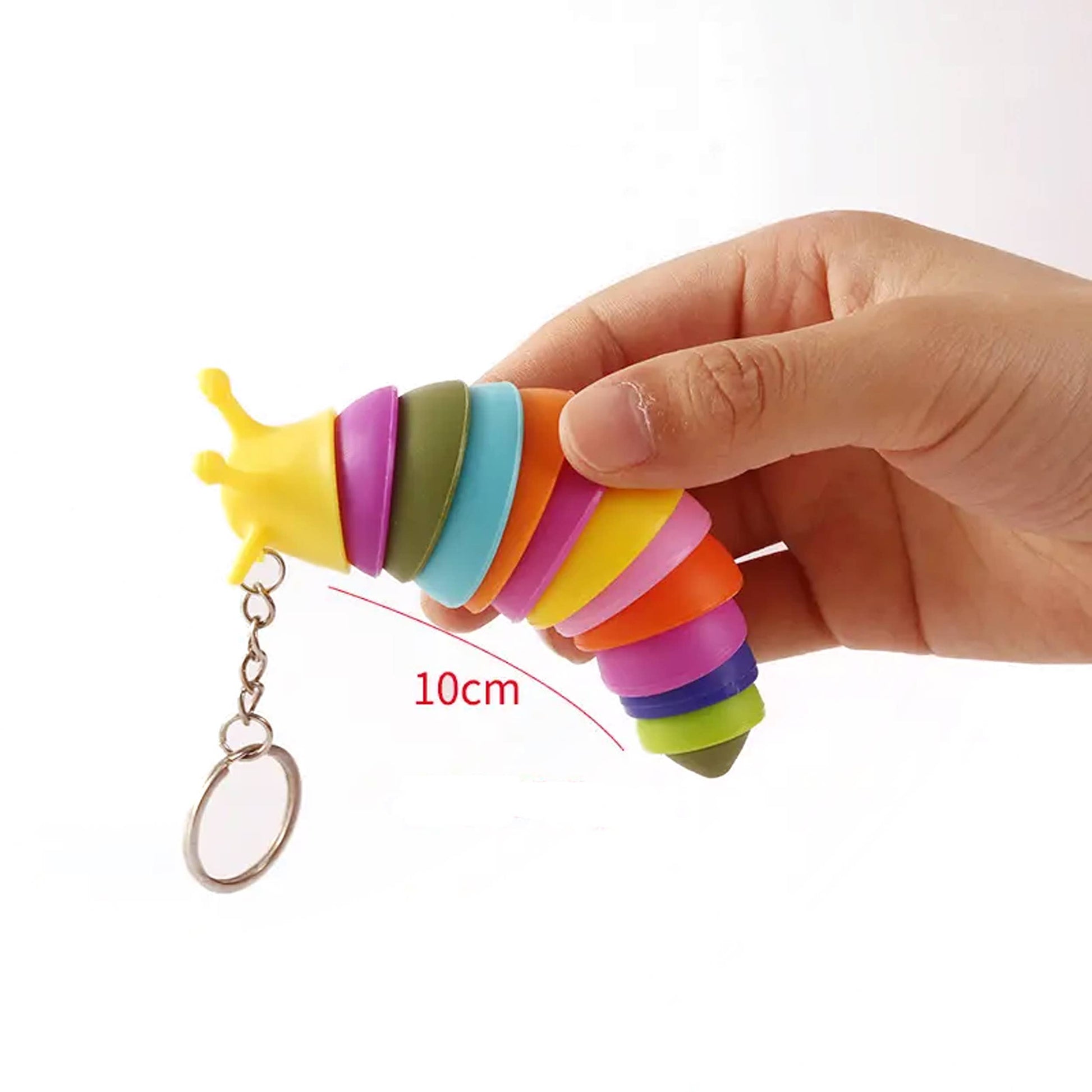 Fun and colorful: This rainbow slug keychain toy is a playful and colorful addition to any kid's keychain or backpack.